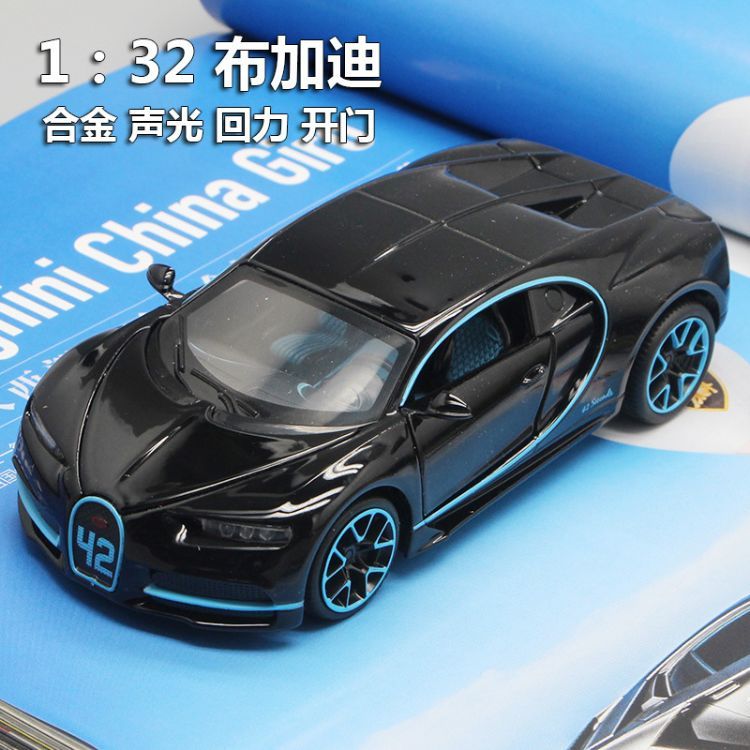 建元仿真布加迪赤龙合金车模型热销儿童声光回力创意汽车饰品批发